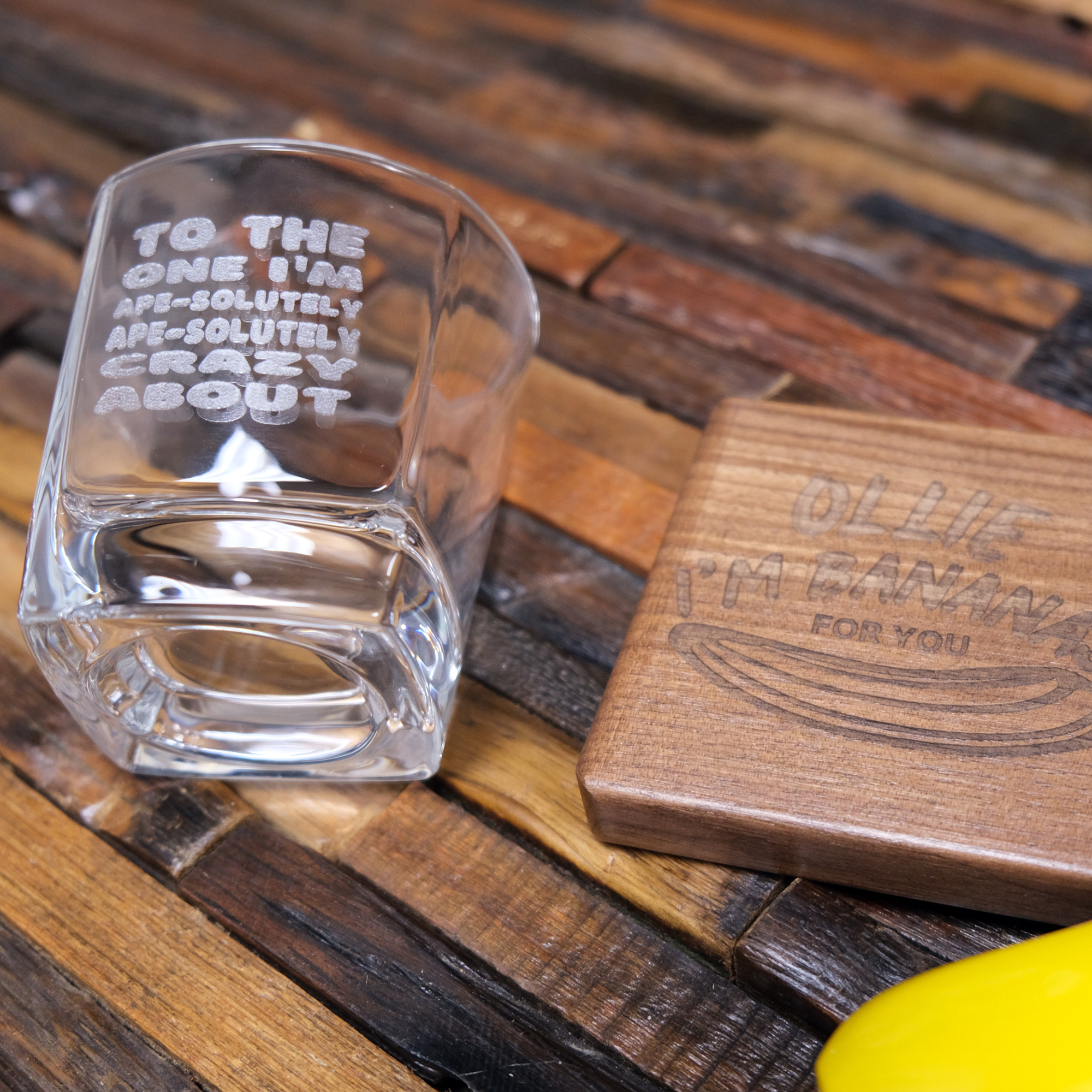 This playful and practical gift set is perfect for the person who has everything. The realistic banana-shaped flask is the ultimate party accessory, allowing you to sneak your favorite spirits into any event, from concerts to sporting events. Once you’ve enjoyed your drink, unwind with the matching whiskey glass and coaster, engraved with adorable monkey-themed puns. The coaster reads “I’m Banana for you,” while the glass proclaims, “To The One I’m Ape-solutely Ape-solutely Crazy About.” This fun and functional gift is sure to bring a smile to anyone’s face.