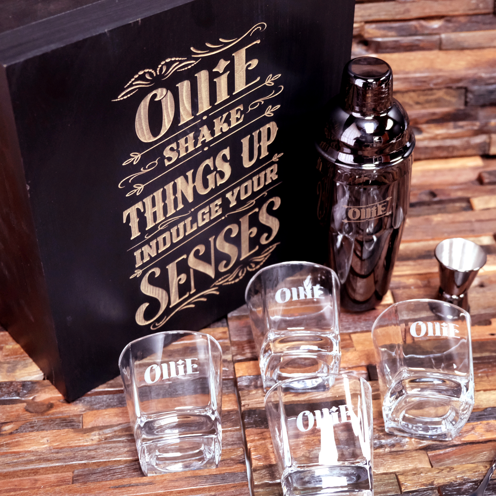 Cocktail Mixology Set with 4 Glasses and Black Wood Box